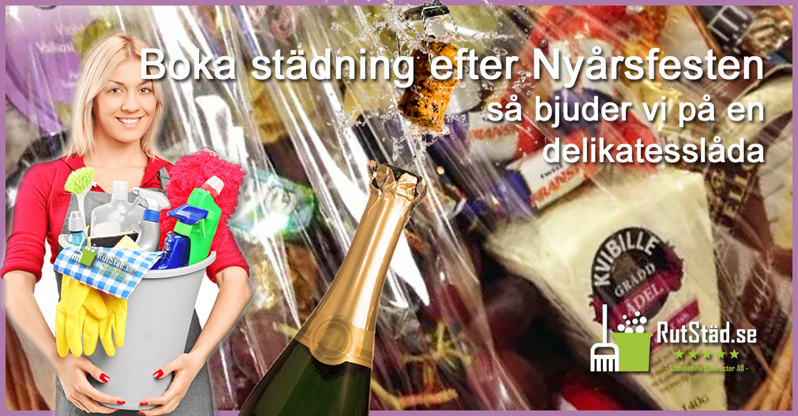 Gott folk! Här får alla ni som som bokar städning efter nyårsfesten och mellandagarna en Delikatesslåda på köpet. Vi levererar då vi kommer och städar. Passa på och unna Er lite Nyårslyx, boka med kod NYTT ÅR IGEN