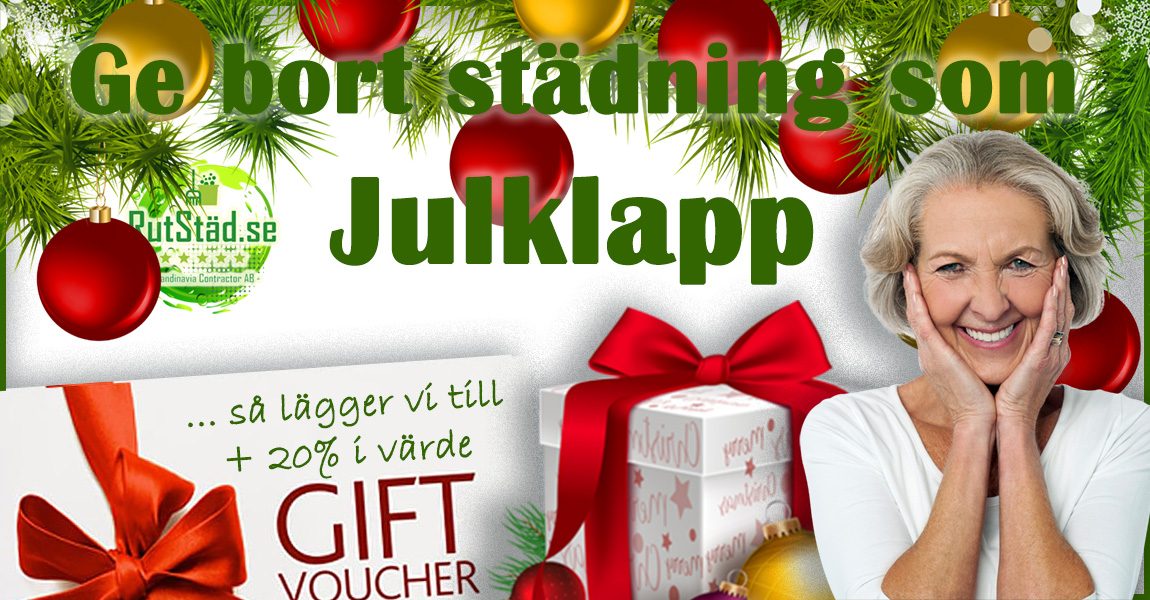 Rospiggar, hör upp! Tips! Ge bort presentkort med städning som julklapp. Ange kod "GLITTERDAMM", när du beställer presentkorten, så lägger vi till 20 % extra värde på varje – som tack för att du är eller blir kund! Ett presentkort på städning hos oss, är verkligen en uppskattad och användbar julklapp - till föräldrar, vänner eller kollegor, m.fl...