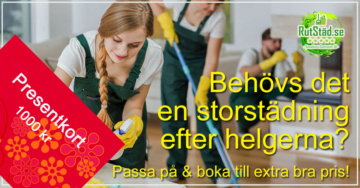 Boka in en storstädning, med eller utan fönsterputs, som vi utför innan sista mars, så får du ett presentkort på 1000kr (som rabatt), som du kan använda när som helst under resten av året. Det skulle väl kännas toppen, innan Påsk?